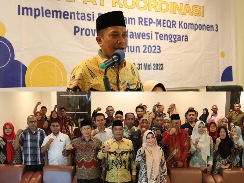 Kendari, (Humas Sultra) --- Dalam rangka optimalisasi program Realizing Educations Promise Madrasah Education Quality Reform (REP-MEQR) tahun anggaran 2023, Kanwil Kemenag Sultra melalui Bidang Pendidikan Madrasah menggelar Rakor Implementasi Program REP-MEQR Komponen 3 tingkat Prov. Sultra, Selasa (31/5/2023).